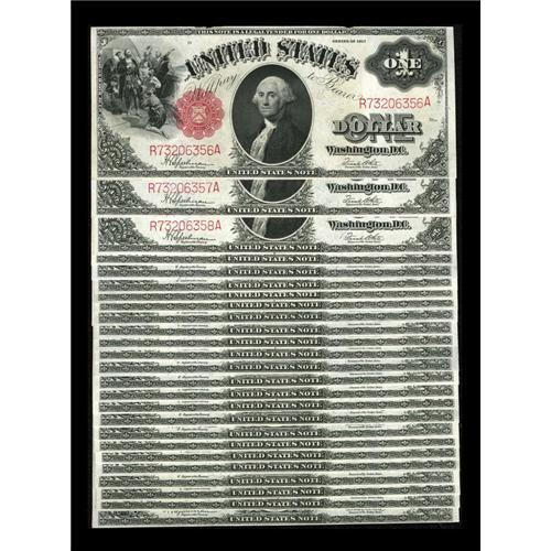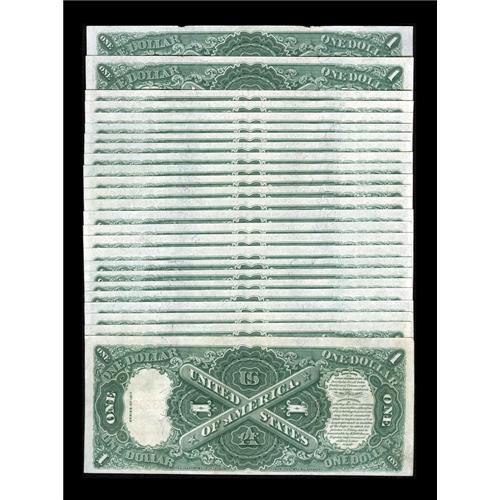 <B>Fr. 39 $1 1917 Legal Tender Consecutive Run of Twenty-Five Choice New.</B></I> The first and last notes from this run have a few minor problems, but the 23 pieces in the middle all grade Choice to Gem. Original runs of Large Size Type Notes have all but disappeared from today's market, and this group is the first of its design type that we've seen in decades. There are six cut sheets in the group.<BR><BR><b>Shipping:</b> Coins & Currency (<a target="_blank" href="http://www.heritageauctions.com/common/shipping.php">view shipping information</a>)