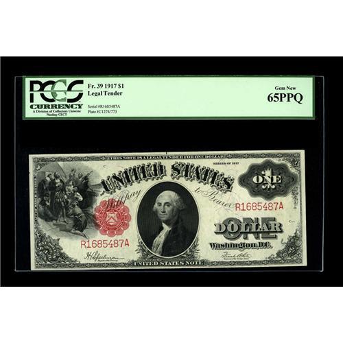 Fr. 39 $1 1917 Legal Tender PCGS Gem New 65PPQ. This is