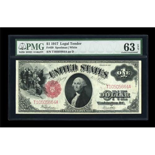 <B>Fr. 39 $1 1917 Legal Tender PMG Choice Uncirculated 63 EPQ.</B></I> A bit tight across the top, but lovely in every other way. <BR><BR><b>Shipping:</b> Coins & Currency (<a target="_blank" href="http://www.heritageauctions.com/common/shipping.php">view shipping information</a>)