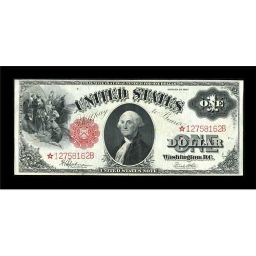 <B>Fr. 39 $1 1917 Mule Legal Tender Star Note Extremely Fine-About New.</B></I> This bright example raises to 16 the quantity of mule replacement notes known for this signature combination. This note that carries Burke Back Plate 2101 is third finest with just two notes better according to Doug Murray's census data. <BR><BR><b>Shipping:</b> Coins & Currency (<a target="_blank" href="http://www.heritageauctions.com/common/shipping.php">view shipping information</a>)