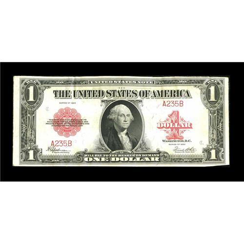 <B>Fr. 40 $1 1923 Legal Tender About New.</B></I> There are some minor stains at the edges, as well as a short edge tear confined to the top margin. The note has the three-digit serial number A235B.<BR><BR><b>Shipping:</b> Coins & Currency (<a target="_blank" href="http://www.heritageauctions.com/common/shipping.php">view shipping information</a>)