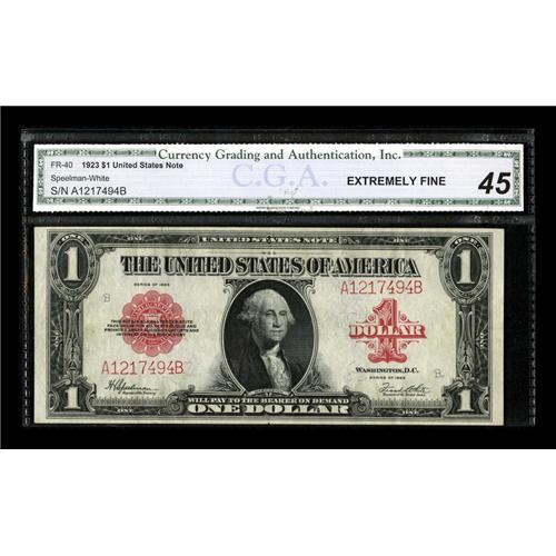 Fr. 40 $1 1923 Legal Tender CGA Extremely Fine 45. Deep