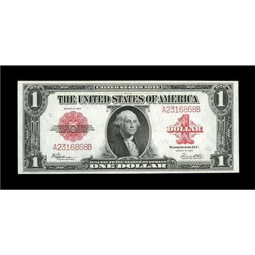 <B>Fr. 40 $1 1923 Legal Tender Very Choice New.</B></I> This is a lovely Red Seal that maintains nicely sized margins. The colors are vivid and the overprint bold. Simply a pleasing example of this ever popular one year type issue.<BR><BR><b>Shipping:</b> Coin/Currency (<a target="_blank" href="http://www.heritageauctions.com/common/shipping.php">view shipping information</a>)