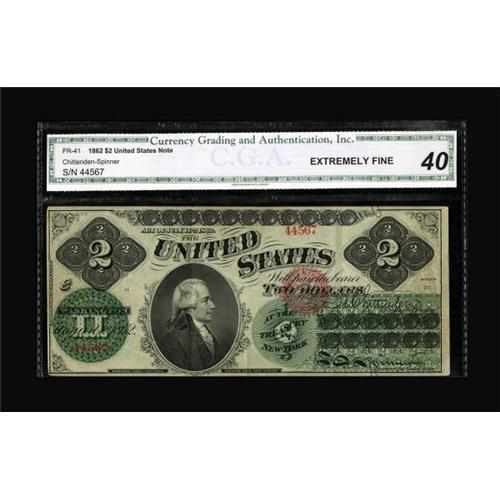 Fr. 41 $2 1862 Legal Tender CGA Extremely Fine Fr. 41 $2 1862 Legal