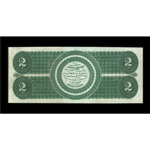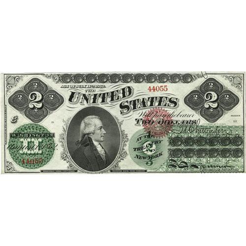 <B>Fr. 41 $2 1862 Legal Tender Choice New.</B></I> Lots of bright color, good margins, and near-perfect centering of both sides highlight this early Deuce. These are seldom seen with this much "flash." A real treasure of a type note.<BR><I>From The Plymouth Rock Collection</B></I>