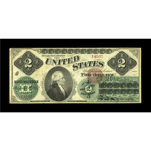 <B>Fr. 41 $2 1862 Legal Tender Fine.</B></I> The design elements are especially strong given the amount of time this note saw in the channels of commerce. Some margin nicks are the only distractions.<BR><I>From The Collection of Greg Southward</B></I><BR><BR><b>Shipping:</b> Coins & Currency (<a target="_blank" href="http://www.heritageauctions.com/common/shipping.php">view shipping information</a>)
