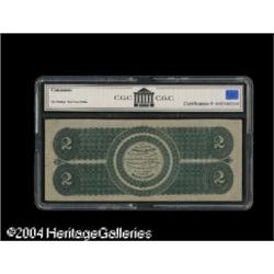 Fr. 41 $2 1862 Legal Tender Note Extremely Fine. A stro <B>Fr. 41 $2 1862 Legal Tender CGC Extremely Fine 40.</B></I> A small repaired margin split is noted at right on this certified note. <BR><BR><B>Important notice:</B> Heritage usually auctions material at the rate of 200-250 lots per hour. On some occasions eBay Live bid software or the Internet may not be able to keep up with the pace of the auction. We recommend placing a realistic absentee bid now as insurance to avoid disappointment. Occasionally the auctioneer may eliminate or reject an eBay Live bid, and the auctioneer may also reopen a lot after the close of the eBay live bidding (usually because we missed an audience bid), and may reject your bid even if it shows you as the winning bidder. By bidding via eBay Live, you agree that Heritage may award the lot to another bidder at its sole discretion under the circumstances described above or any other reasonable circumstances. Since eBay bids are not shown to us until we open the lot on the floor, we treat those bids just like floor bids. In most cases the floor responds before the eBay bid is presented to us, due to Internet lag time, so for consistency we have made it a policy that floor bids are always considered first over tie eBay live bids. Also please note that all Heritage lots purchased through eBay Live carry a 20% Buyer's Premium. Please make sure you read the Terms and Conditions before you bid. This lot is being auctioned in conjunction with a live floor auction by Heritage Galleries & Auctioneers. All final auction and invoice information will be supplied by Heritage Galleries & Auctioneers, and all other information should be considered preliminary. Lot:16784