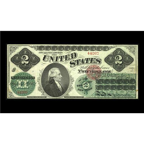 <B>Fr. 41 $2 1862 Legal Tender Very Fine-Extremely Fine.</B></I> A beautifully colored, perfectly natural example of this popular Early Deuce type.