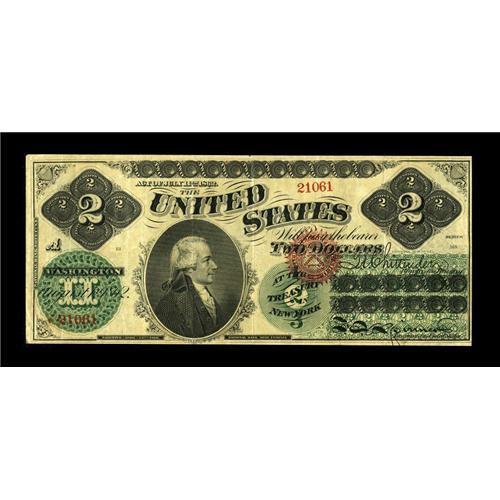 <B>Fr. 41 $2 1862 Legal Tender Very Fine.</B></I> Unusually broadly margined and with bright, bold colors. A handsome example that is sure to please its new owner.<BR><I>From The Jacob and Heather Dedman Collection</B></I><BR><BR><b>Shipping:</b> Coins & Currency (<a target="_blank" href="http://www.heritageauctions.com/common/shipping.php">view shipping information</a>)