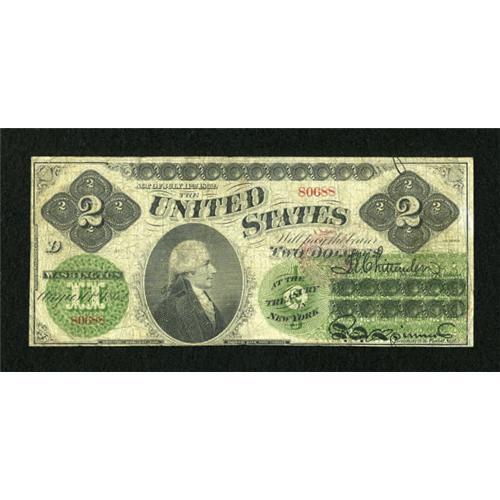 <B>Fr. 41a $2 1862 Legal Tender Very Good-Fine.</B></I> The paper is still snappy on this early Deuce.<BR><I>From The John Ameen Collection</B></I><BR><BR><b>Shipping:</b> Coins & Currency (<a target="_blank" href="http://www.heritageauctions.com/common/shipping.php">view shipping information</a>)