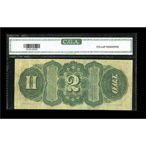 <B>Fr. 42 $2 1869 Legal Tender CGA Very Fine 25.</B></I> A handsome Rainbow Deuce that appears to be a very nice example of the grade.