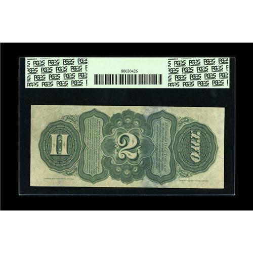 <B>Fr. 42 $2 1869 Legal Tender PCGS Gem New 66PPQ.</B></I> Simply one of the finest examples of its kind that this cataloger has had the opportunity to describe. This certainly is not a note that should be missed as many collectors know the difficulty in obtaining a near superb example of this Large Size Type. The margins surrounding this piece are quite equal all around. A dazzling array of color certainly applies to this Rainbow. Simply impossible to find much nicer. The opportunity to take this prize home is before you, and the outcome soon will be determined.