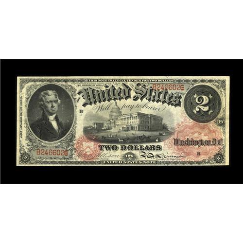 <B>Fr. 43 $2 1874 Legal Tender Extremely Fine.</B></I> Under 90 examples are known of this one Friedberg number 1874 series. This one has light folds, while the colors and eye appeal of the note are excellent.<BR><I>From The Bill and Kathy Stella Currency Collection</B></I><BR><BR><b>Shipping:</b> Coin/Currency (<a target="_blank" href="http://www.heritageauctions.com/common/shipping.php">view shipping information</a>)