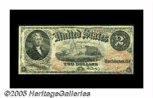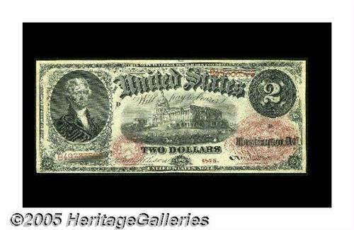 <B>Fr. 43 $2 1874 Legal Tender VG</B></I><B>Fr. 44 $2 1875 Legal Tender Fine-VF.</B></I><BR>
