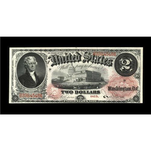 <B>Fr. 44 $2 1875 Legal Tender Extremely Fine.</B></I> The overall eye appeal is characteristic of a full Uncirculated note. The colors are still bright and the margins decent, save for the bottom. There are however three light folds that account for the grade.<BR><I>From The Bill and Kathy Stella Currency Collection</B></I><BR><BR><b>Shipping:</b> Coin/Currency (<a target="_blank" href="http://www.heritageauctions.com/common/shipping.php">view shipping information</a>)