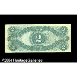 Fr. 47 $2 1875 Legal Tender Extremely Fine. Well balanc <B>Fr. 47 $2 1875 Legal Tender Extremely Fine.</B></I> Well balanced margins and a strong red overprint highlight this scarcer 1875 Deuce from the Fredericks Collection. Fewer then 60 examples of this number are known in all grades combined. <BR><BR><B>Important notice:</B> Heritage usually auctions material at the rate of 200-250 lots per hour. On some occasions eBay Live bid software or the Internet may not be able to keep up with the pace of the auction. We recommend placing a realistic absentee bid now as insurance to avoid disappointment. Occasionally the auctioneer may eliminate or reject an eBay Live bid, and the auctioneer may also reopen a lot after the close of the eBay live bidding (usually because we missed an audience bid), and may reject your bid even if it shows you as the winning bidder. By bidding via eBay Live, you agree that Heritage may award the lot to another bidder at its sole discretion under the circumstances described above or any other reasonable circumstances. Since eBay bids are not shown to us until we open the lot on the floor, we treat those bids just like floor bids. In most cases the floor responds before the eBay bid is presented to us, due to Internet lag time, so for consistency we have made it a policy that floor bids are always considered first over tie eBay live bids. Also please note that all Heritage lots purchased through eBay Live carry a 20% Buyer's Premium. Please make sure you read the Terms and Conditions before you bid. This lot is being auctioned in conjunction with a live floor auction by Heritage Galleries & Auctioneers. All final auction and invoice information will be supplied by Heritage Galleries & Auctioneers, and all other information should be considered preliminary. Lot:16811