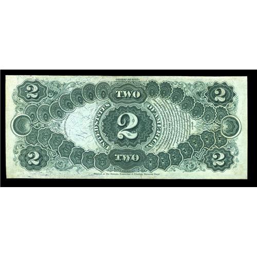 <B>Fr. 48 $2 1878 Legal Tender Choice New.</B></I> A natural note with some paper ripples that might easily be mistaken as folds by an inexperienced eye. They are actually evidence of its originality and freedom from molestation. Face centering shifted very slightly towards the left, as well as the presence of subtle and difficult to detect mounting evidence on the back preclude the Gem grade.