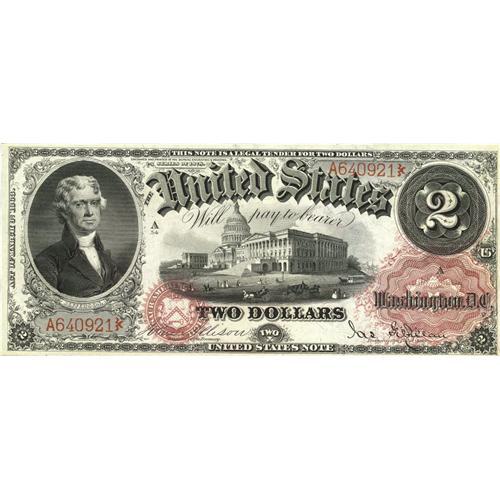 <B>Fr. 48 $2 1878 Legal Tender Choice New.</B></I> Over ten years have passed since this note was sold last. Tight at bottom right, but an attractive representation of this elusive type which is boldly printed. An innocuous corner ding affects nothing.