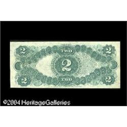Fr. 51 $2 1880 Legal Tender Extremely Fine-About New. <B>Fr. 51 $2 1880 Legal Tender Extremely Fine-About New.</B></I> The back is very nicely centered, but the face printing is skewed, with the frame line just touched at the right end of the bottom. <BR><BR><B>Important notice:</B> Heritage usually auctions material at the rate of 200-250 lots per hour. On some occasions eBay Live bid software or the Internet may not be able to keep up with the pace of the auction. We recommend placing a realistic absentee bid now as insurance to avoid disappointment. Occasionally the auctioneer may eliminate or reject an eBay Live bid, and the auctioneer may also reopen a lot after the close of the eBay live bidding (usually because we missed an audience bid), and may reject your bid even if it shows you as the winning bidder. By bidding via eBay Live, you agree that Heritage may award the lot to another bidder at its sole discretion under the circumstances described above or any other reasonable circumstances. Since eBay bids are not shown to us until we open the lot on the floor, we treat those bids just like floor bids. In most cases the floor responds before the eBay bid is presented to us, due to Internet lag time, so for consistency we have made it a policy that floor bids are always considered first over tie eBay live bids. Also please note that all Heritage lots purchased through eBay Live carry a 20% Buyer's Premium. Please make sure you read the Terms and Conditions before you bid. This lot is being auctioned in conjunction with a live floor auction by Heritage Galleries & Auctioneers. All final auction and invoice information will be supplied by Heritage Galleries & Auctioneers, and all other information should be considered preliminary. Lot:16819