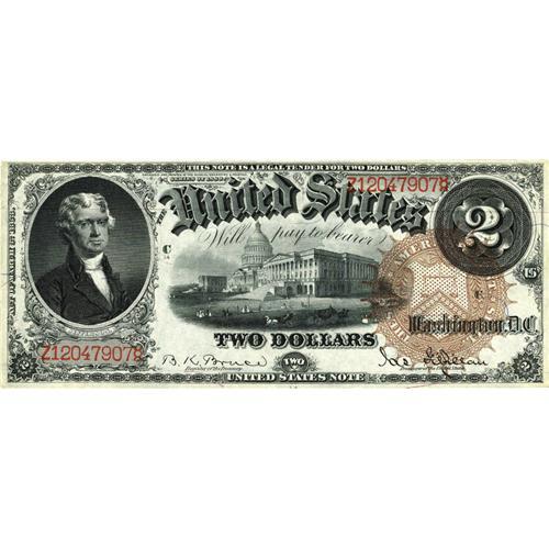 <B>Fr. 51 $2 1880 Legal Tender Very Choice New.</B></I> Another example which displays deep original embossing, bright colors, and lots of eye appeal. If the top left margin were a bit wider than this would certainly be a Gem.