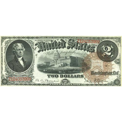 <B>Fr. 51 $2 1880 Legal Tender Very Choice New.</B></I> Deep original embossing, bright colors, and lots of eye appeal carry this Brown Seal deuce quite close to the full Gem grade. A touch over 100 examples are known in all grades combined. This one is from a short run of new examples.<BR><I>From The Plymouth Rock Collection</B></I>