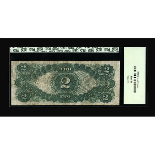 <B>Fr. 53 $2 1880 Legal Tender PCGS Fine 15.</B></I> This evenly circulated piece boasts the eye appeal of a full Very Fine, with attractive paper and sharp color. This newly discovered piece brings the total number of examples known to exactly three and a half dozen.<BR><BR><b>Shipping:</b> Coins & Currency (<a target="_blank" href="http://www.heritageauctions.com/common/shipping.php">view shipping information</a>)