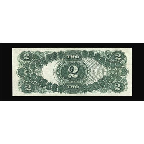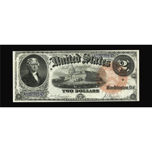 <B>Fr. 53 $2 1880 Legal Tender Very Choice New.</B></I> A premium quality note with its original surfaces, embossing, and color. The top edge drifts just too closely to the frame line above the portrait to be a gem. This note is not in the census, but it is so close in grade and appearance to the note that we deemed the best for this number in our May 1998 auction. That note has gone on to set records and we believe that this one will too.<BR><I>From The Plymouth Rock Collection</B></I>
