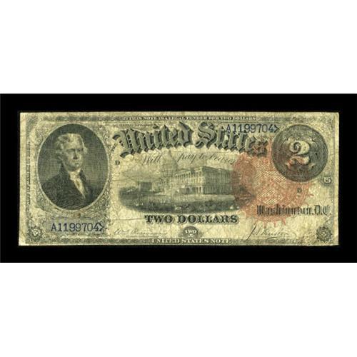 <B>Fr. 53 $2 1880 Legal Tender Very Good.</B></I> A rather rare number, with just about three dozen examples known to us in all grades combined. In spite of its heavy circulation, the color remains rather good, and the rarity certainly can't be questioned.<BR><BR><b>Shipping:</b> Coins & Currency (<a target="_blank" href="http://www.heritageauctions.com/common/shipping.php">view shipping information</a>)
