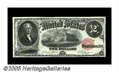 <B>Fr. 56 $2 1880 Legal Tender Choice New.</B></I> This is a fresh, original, and well centered Deuce that has a tiny corner tip fold.