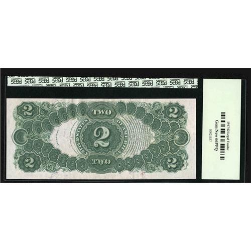 <B>Fr. 57 $2 1917 Legal Tender Star Note PCGS Gem New 66PPQ.</B></I> A gorgeous star note with a pedigree that goes back to pioneer currency dealer and collector William Philpott who owned this piece as part of a cut sheet of stars. Its latest owner is Richard Merlau, whose collection this comes from. It appears to fully merit the grade of Gem New 66PPQ bestowed upon it by PCGS, as it is bright, well margined, and offers great eye appeal.