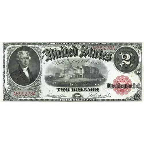 <B>Fr. 57 $2 1917 Legal Tender Very Choice New.</B></I> If only some thicker horizontal margins were seen this note would be a solid Gem. Wonderful centering is displayed and lovely color dances across the natural surfaces.