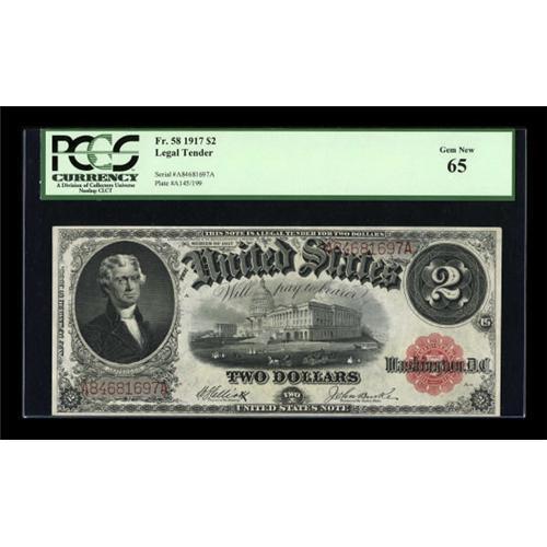 Fr. 58 $2 1917 Legal Tender PCGS Gem New 65.