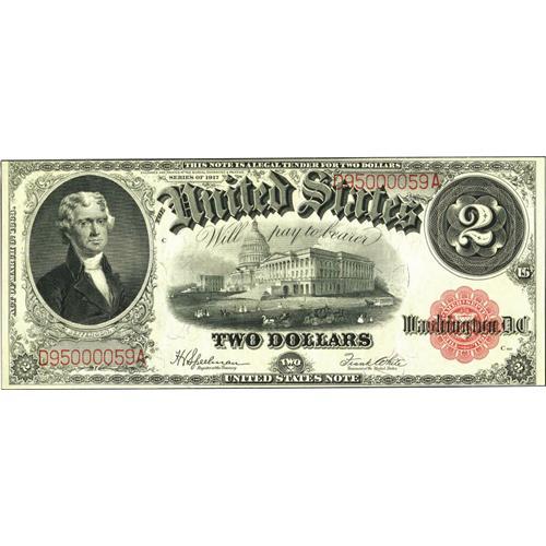 <B>Fr. 60 $2 1917 Legal Tender Choice New. Fancy Radar Serial Number.</B></I> This note has plenty of eye appeal, but the most striking characteristic of this example is the radar serial number D95000059A.