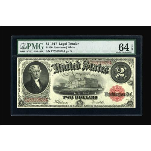 Fr. 60 $2 1917 Legal Tender PMG Choice
