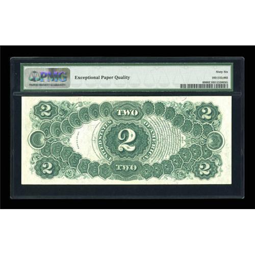 <B>Fr. 60 $2 1917 Legal Tender PMG Gem Uncirculated 66 EPQ.</B></I> Fr. 60 is one of the most common Large Size type notes, and certainly the most common Deuce. Nonetheless, 66EPQ examples are far from common. PMG has graded 22 Fr. 60s at this level with only one piece higher. This is not the note used by the Dauers as their illustration, but the type is illustrated on page 66 along with a biography of Thomas Jefferson. <BR><I>From The Dr. Edward & Joanne Dauer Collection</B></I><BR><BR><b>Shipping:</b> Coins & Currency (<a target="_blank" href="http://www.heritageauctions.com/common/shipping.php">view shipping information</a>)