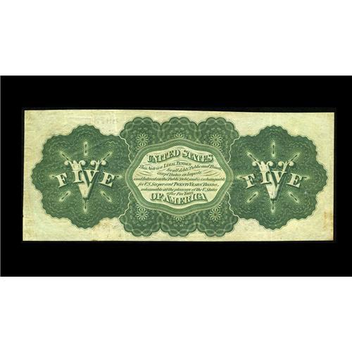 <B>Fr. 61a $5 1862 Legal Tender Extremely Fine.</B></I> Excellent margins for the issue along with ideal color and fresh natural surfaces make this a highly desirable example of the 1862 Five Dollar Legal type.