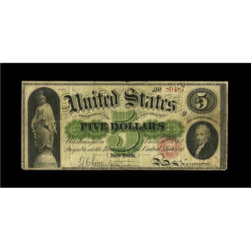 <B>Fr. 61a $5 1862 Legal Tender Fine.</B></I> Problem free for the grade and a still very presentable example of this early type.