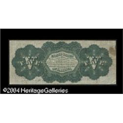 Fr. 61a $5 1862 Legal Tender Fine-Very Fine. Well m <B>Fr. 61a $5 1862 Legal Tender Fine-Very Fine.</B></I> Well margined, with good ink color and none of the edge problems that are normally seen on this issue. The note's only detraction is a brown stain at the upper left. <BR><BR><B>Important notice:</B> Heritage usually auctions material at the rate of 200-250 lots per hour. On some occasions eBay Live bid software or the Internet may not be able to keep up with the pace of the auction. We recommend placing a realistic absentee bid now as insurance to avoid disappointment. Occasionally the auctioneer may eliminate or reject an eBay Live bid, and the auctioneer may also reopen a lot after the close of the eBay live bidding (usually because we missed an audience bid), and may reject your bid even if it shows you as the winning bidder. By bidding via eBay Live, you agree that Heritage may award the lot to another bidder at its sole discretion under the circumstances described above or any other reasonable circumstances. Since eBay bids are not shown to us until we open the lot on the floor, we treat those bids just like floor bids. In most cases the floor responds before the eBay bid is presented to us, due to Internet lag time, so for consistency we have made it a policy that floor bids are always considered first over tie eBay live bids. Also please note that all Heritage lots purchased through eBay Live carry a 20% Buyer's Premium. Please make sure you read the Terms and Conditions before you bid. This lot is being auctioned in conjunction with a live floor auction by Heritage Galleries & Auctioneers. All final auction and invoice information will be supplied by Heritage Galleries & Auctioneers, and all other information should be considered preliminary. Lot:16854