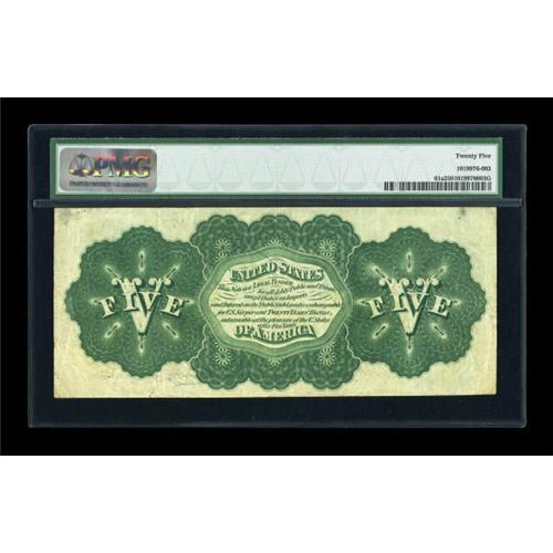 <B>Fr. 61a $5 1862 Legal Tender PMG Very Fine 25.</B></I> This is a problem-free note with bright paper and just a handful of vertical folds.<BR><BR><b>Shipping:</b> Coins & Currency (<a target="_blank" href="http://www.heritageauctions.com/common/shipping.php">view shipping information</a>)