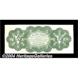 Fr. 61a $5 1862 Legal Tender Very Choice New. A perfect Gem but for a tight right face margin. The original embossing is easily seen, and the colors are spectacular. A lovely two-digit example, sure to attract spirited bidding action. <BR><BR><B>Important notice:</B> Heritage usually auctions material at the rate of 200-250 lots per hour. On some occasions eBay Live bid software or the Internet may not be able to keep up with the pace of the auction. We recommend placing a realistic absentee bid now as insurance to avoid disappointment. Occasionally the auctioneer may eliminate or reject an eBay Live bid, and the auctioneer may also reopen a lot after the close of the eBay live bidding (usually because we missed an audience bid), and may reject your bid even if it shows you as the winning bidder. By bidding via eBay Live, you agree that Heritage may award the lot to another bidder at its sole discretion under the circumstances described above or any other reasonable circumstances. Since eBay bids are not shown to us until we open the lot on the floor, we treat those bids just like floor bids. In most cases the floor responds before the eBay bid is presented to us, due to Internet lag time, so for consistency we have made it a policy that floor bids are always considered first over tie eBay live bids. Also please note that all Heritage lots purchased through eBay Live carry a 20% Buyer's Premium. Please make sure you read the Terms and Conditions before you bid. <BR><BR><B>IMPORTANT ANNOUNCEMENT ABOUT RESERVES:</B> Heritage now divulges all reserves on its web site 7 days before every auction. If you want to know whether the reserve on this lot has been met, and if not, what the reserve amount is, please visit this lot page on the HeritageCoin.com web site, or email: bid@HeritageGalleries.com