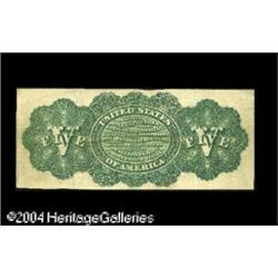 Fr. 63 $5 1863 Legal Tender Serial Number 1 Very Fine. <B>Fr. 63 $5 1863 Legal Tender Serial Number 1 Very Fine.</B></I> This Serial Number One, which is previously unreported, brings the total of #1's known for Fr. 63 to seven, none of which grade better than this piece. These 1862 and 1863 Legals were only numbered up through 999999, at which point the series number was changed, and the serial numbers re-started with #1 again. After 1863, serial numbers went to eight digits, and number-one notes became far rarer. Nonetheless, they are extremely popular, and they are the only number-one Type Notes that are affordable to the collector of more modest means. This note, from the Trask Collection, has minor mounting remnants in both upper corners and a few pinholes, but it is otherwise problem free.<BR><I>From the collection of Malcolm A. Trask.</B></I> <BR><BR><B>Important notice:</B> Heritage usually auctions material at the rate of 200-250 lots per hour. On some occasions eBay Live bid software or the Internet may not be able to keep up with the pace of the auction. We recommend placing a realistic absentee bid now as insurance to avoid disappointment. Occasionally the auctioneer may eliminate or reject an eBay Live bid, and the auctioneer may also reopen a lot after the close of the eBay live bidding (usually because we missed an audience bid), and may reject your bid even if it shows you as the winning bidder. By bidding via eBay Live, you agree that Heritage may award the lot to another bidder at its sole discretion under the circumstances described above or any other reasonable circumstances. Since eBay bids are not shown to us until we open the lot on the floor, we treat those bids just like floor bids. In most cases the floor responds before the eBay bid is presented to us, due to Internet lag time, so for consistency we have made it a policy that floor bids are always considered first over tie eBay live bids. Also please note that all Heritage lots purchased through eBay Live carry a 20% Buyer's Premium. Please make sure you read the Terms and Conditions before you bid. This lot is being auctioned in conjunction with a live floor auction by Heritage Galleries & Auctioneers. All final auction and invoice information will be supplied by Heritage Galleries & Auctioneers, and all other information should be considered preliminary. Lot:16859
