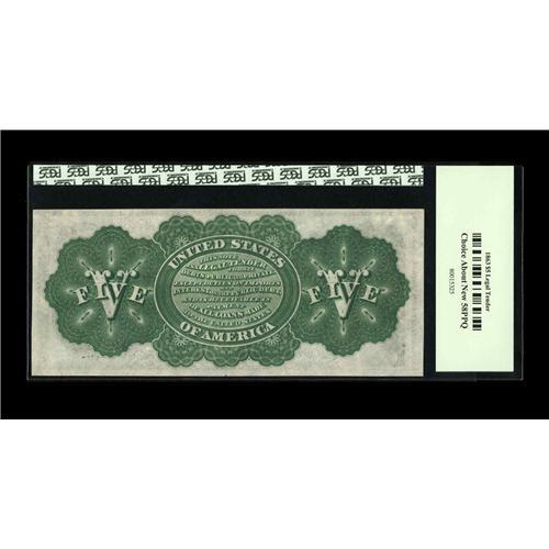 <B>Fr. 63a $5 1863 Legal Tender PCGS Choice About New 58PPQ.</B></I> Spectacular margins and glorious color. The note has a bold corner fold at the lower left that crosses the design.