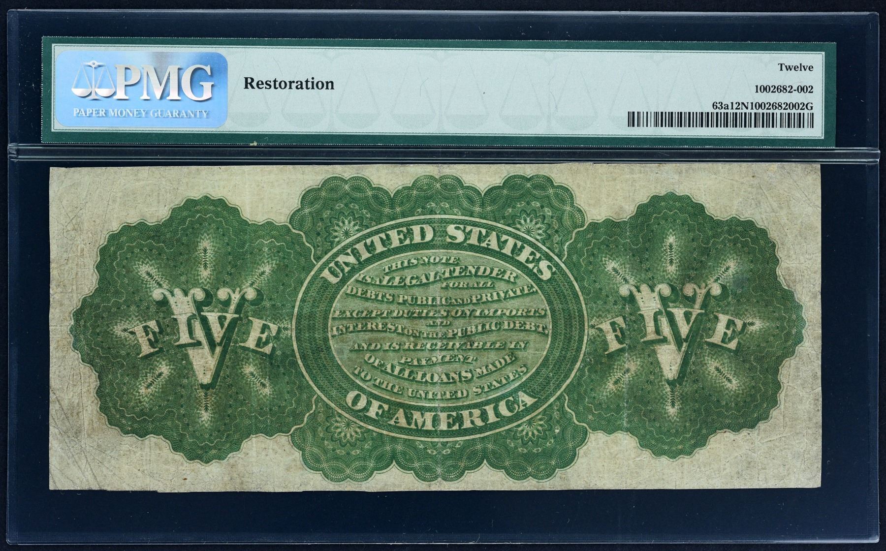 Title: Fr. 63a $5 1863 Legal Tender PMG Fine 12 Net restorations