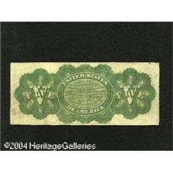 Fr. 63a $5 1863 Legal Tender Serial Number 1 Fine. <B>Fr. 63a $5 1863 Legal Tender Serial Number 1 Fine.</B></I> Although no Serial Number 1 note can be taken lightly, it must be remembered that these 1862 and 1863 Fives returned to serial number 1 after 999,999 notes were printed, raising the possibility of the existence of multiple number-one notes. That said, this is the first serial number 1 Fr. 63a to have ever been reported. There are seven 63's, two 62's, five 61a's, a 61 and a 63b. But until the appearance of this note from the Malcolm Trask Collection, Fr. 63a's had remained unknown as number-one notes. This piece is a solid Fine, utterly problem-free for the grade and with a bold, red serial number.<BR><I>From the collection of Malcolm A. Trask.</B></I> <BR><BR><B>Important notice:</B> Heritage usually auctions material at the rate of 200-250 lots per hour. On some occasions eBay Live bid software or the Internet may not be able to keep up with the pace of the auction. We recommend placing a realistic absentee bid now as insurance to avoid disappointment. Occasionally the auctioneer may eliminate or reject an eBay Live bid, and the auctioneer may also reopen a lot after the close of the eBay live bidding (usually because we missed an audience bid), and may reject your bid even if it shows you as the winning bidder. By bidding via eBay Live, you agree that Heritage may award the lot to another bidder at its sole discretion under the circumstances described above or any other reasonable circumstances. Since eBay bids are not shown to us until we open the lot on the floor, we treat those bids just like floor bids. In most cases the floor responds before the eBay bid is presented to us, due to Internet lag time, so for consistency we have made it a policy that floor bids are always considered first over tie eBay live bids. Also please note that all Heritage lots purchased through eBay Live carry a 20% Buyer's Premium. Please make sure you read the Terms and Conditions before you bid. This lot is being auctioned in conjunction with a live floor auction by Heritage Galleries & Auctioneers. All final auction and invoice information will be supplied by Heritage Galleries & Auctioneers, and all other information should be considered preliminary. Lot:16862