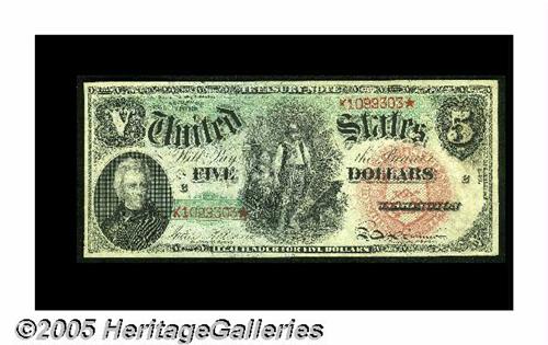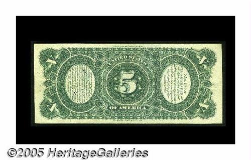 <B>Fr. 64 $5 1869 Legal Tender Extremely Fine.</B></I> The note has great color, excellent margins and a very nice overall appearance. It's a problem-free note without a single hard fold, just some light circulation traces.