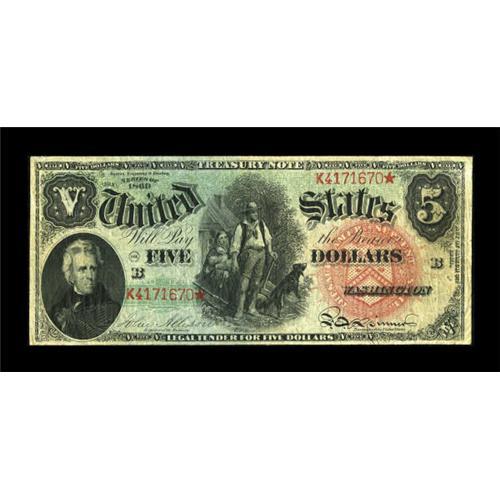 <B>Fr. 64 $5 1869 Legal Tender Fine-Very Fine.</B></I> A nicely margined, brightly colored, evenly circulated example. An ideal collector note.<BR><BR><b>Shipping:</b> Coins & Currency (<a target="_blank" href="http://www.heritageauctions.com/common/shipping.php">view shipping information</a>)