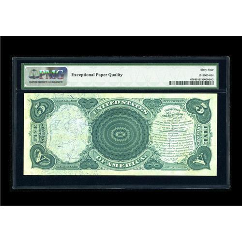 <B>Fr. 67 $5 1875 Legal Tender PMG Choice Uncirculated 64 EPQ.</B></I> The embossing from the rolling letters in UNITED STATES is visible from the back side of the note. The appearance is interrupted by some weakness in the red overprint.<BR><I>From The Bill and Kathy Stella Currency Collection</B></I><BR><BR><b>Shipping:</b> Coin/Currency (<a target="_blank" href="http://www.heritageauctions.com/common/shipping.php">view shipping information</a>)
