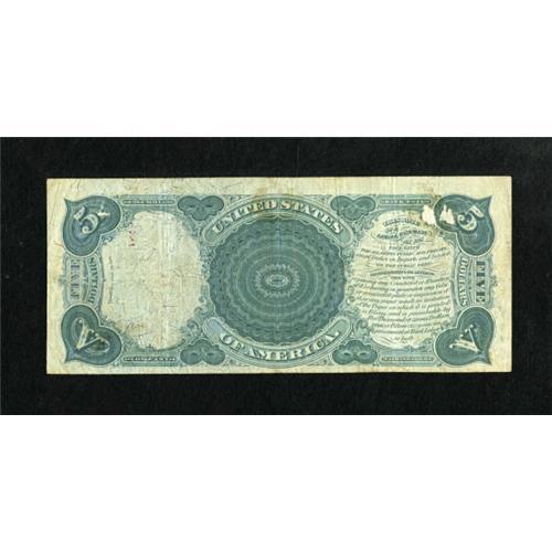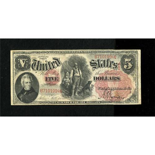 <B>Fr. 68 $5 1875 Legal Tender Very Good-Fine.</B></I> A few scattered adhesive marks on noticed on the back along with a paper skin.<BR><BR><b>Shipping:</b> Coins & Currency (<a target="_blank" href="http://www.heritageauctions.com/common/shipping.php">view shipping information</a>)
