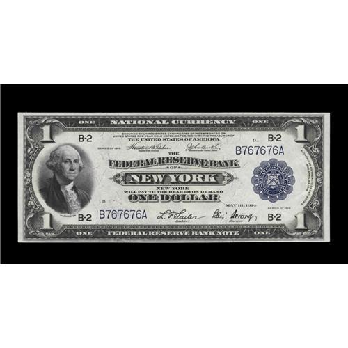<B>Fr. 711 $1 1918 Federal Reserve Bank Note Gem New.</B></I> Vivid printing details and color are highlighted by a repeater serial number, B767676A. A pleasing note for the type collector and fancy serial number enthusiast.