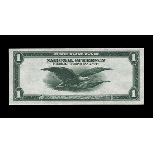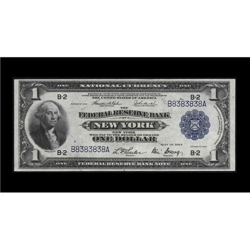 <B>Fr. 711 $1 1918 Federal Reserve Bank Note Superb Gem New.</B></I> Deep original embossing, perfect color, and ideal centering of both sides would make this a very special note even without its eight-digit radar repeater number. Special numbers rarely combine with special grade, but this note has both. Serial Number B8383838A.